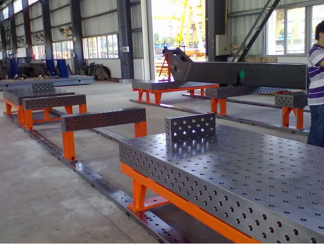 2、柔性化:承載能力高,鋼性穩(wěn)定,它的五個(gè)面均加工有規(guī)則的孔,并刻有網(wǎng)線。焊接平臺(tái)可方便地延伸和擴(kuò)展,組合。經(jīng)擴(kuò)展的標(biāo)準(zhǔn)臺(tái)面可模塊化的定位和夾緊直接連接在一起。在安裝、調(diào)整和定位工件過程將柔性三維組合焊接工裝系統(tǒng)的通用功能展示的淋漓盡致,尤其在了大型工件方面的應(yīng)用上。