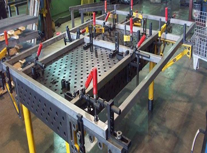 三維柔性焊接平臺工裝的主要特點就是從平臺到附件都是標準孔沒有傳統的螺紋或t型槽,配合快速鎖銷就能使裝配變得更加快捷方便,定位更精確。