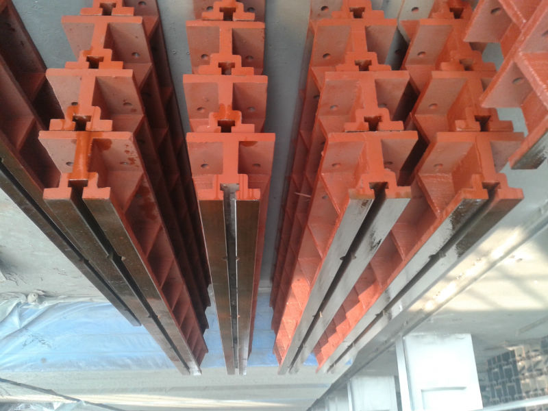 地槽鐵的材質:高強度鑄鐵HT200-300,工作面硬度為HB170-240,經過兩次人工處理(人工退火600度-700度和自然時效)使該產品的精度穩(wěn)定,耐磨性能好。